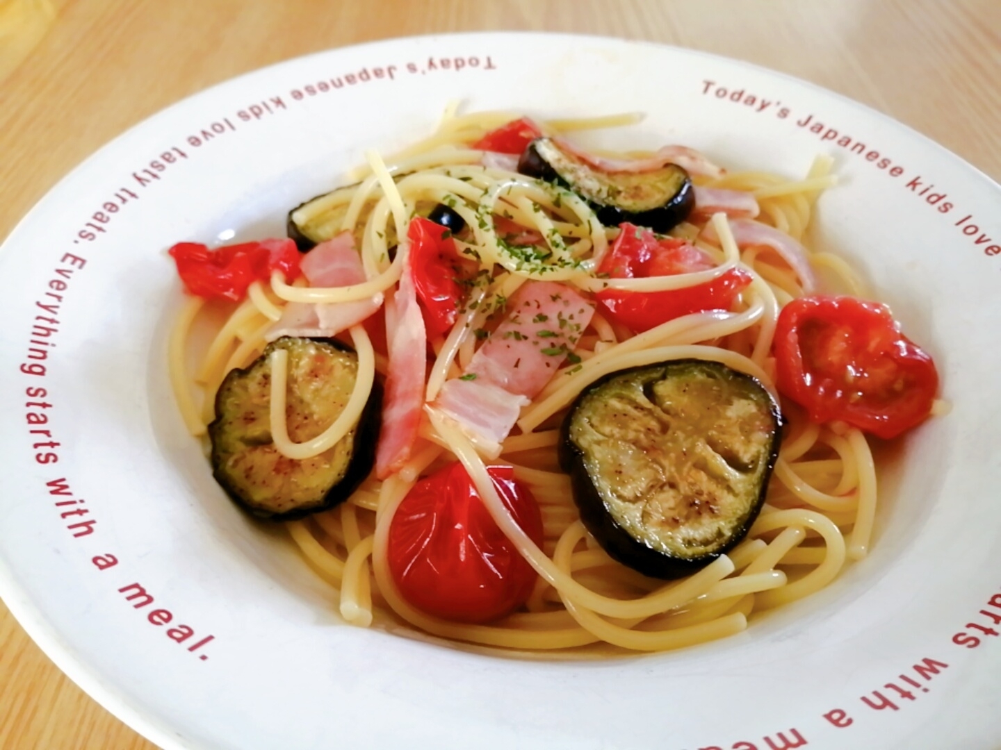 なすとミニトマトとベーコンのコンソメバターパスタ レシピ 作り方 By はじゃじゃ 楽天レシピ